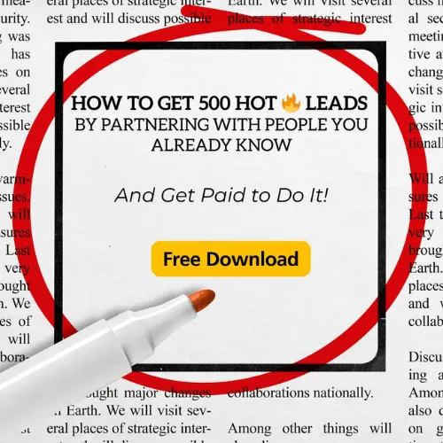 ➥ Free Gift: How to Get 500 Hot Leads by Partnering With People You Already Know (And Get Paid to Do It)
